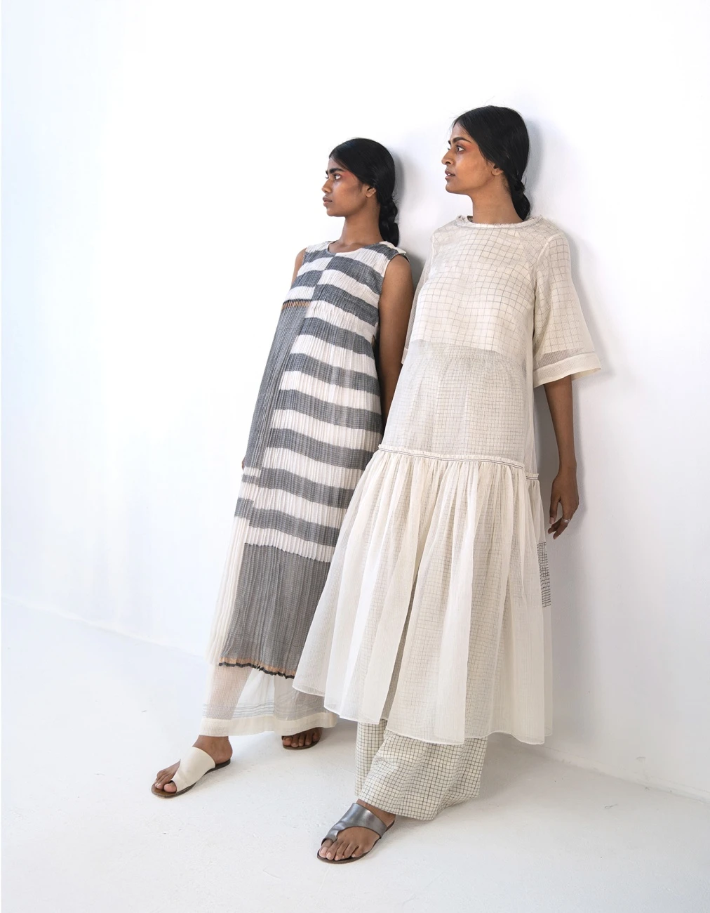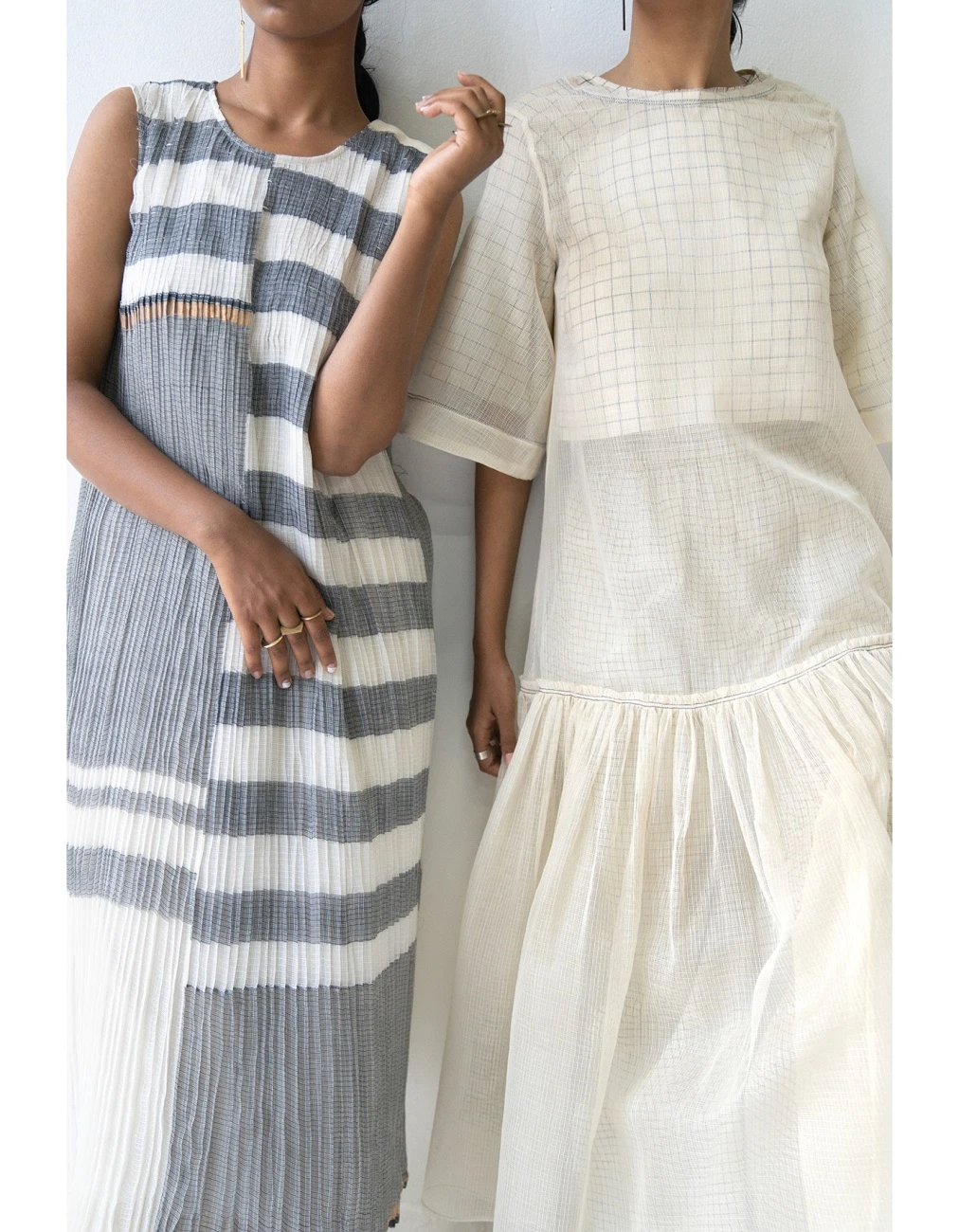 - Handwoven upcycled patchwork kota zari cotton micro pleated dress