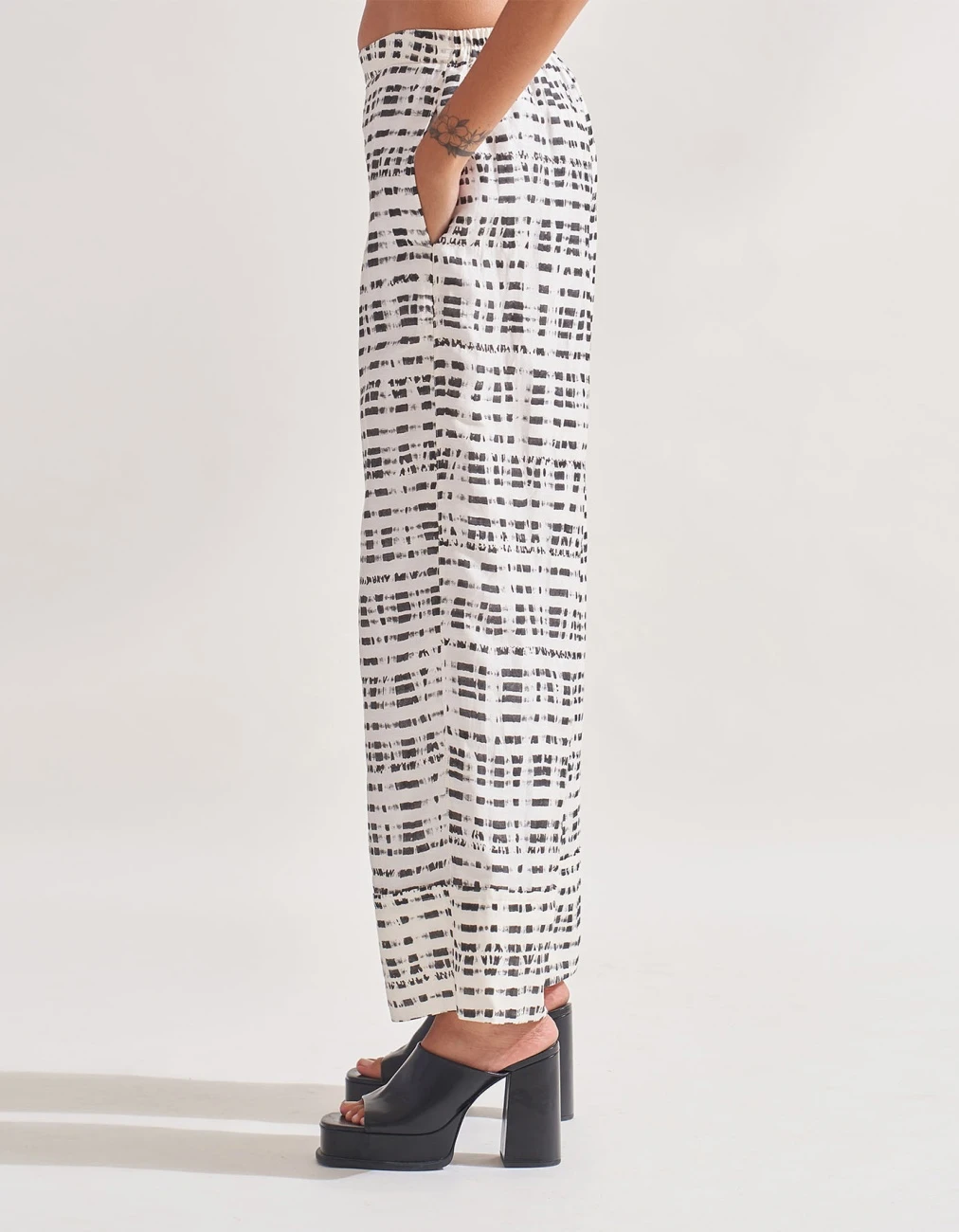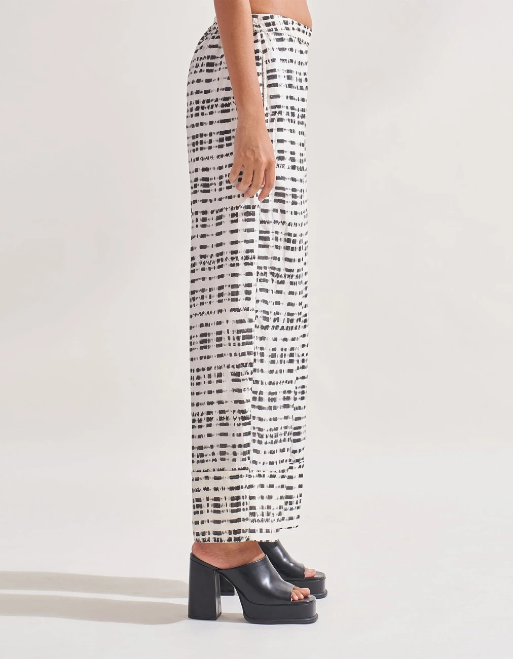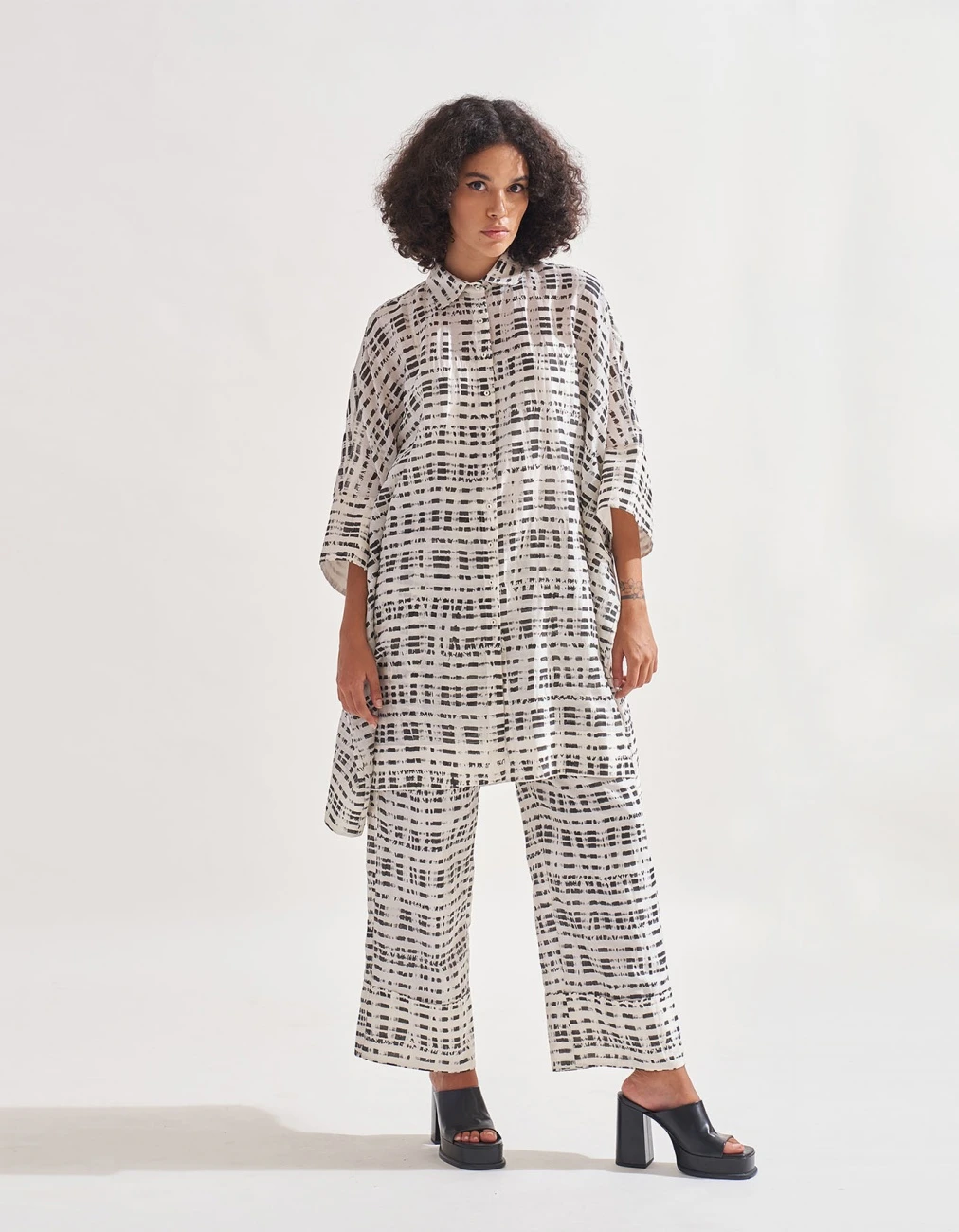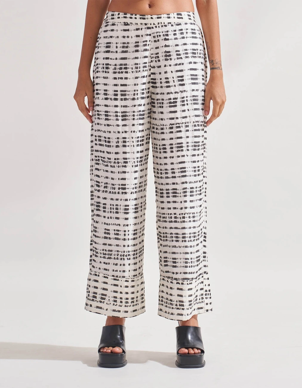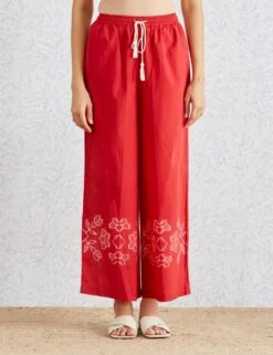 - Silk/cotton blend straight leg cuffed trousers with hand-block print patterning