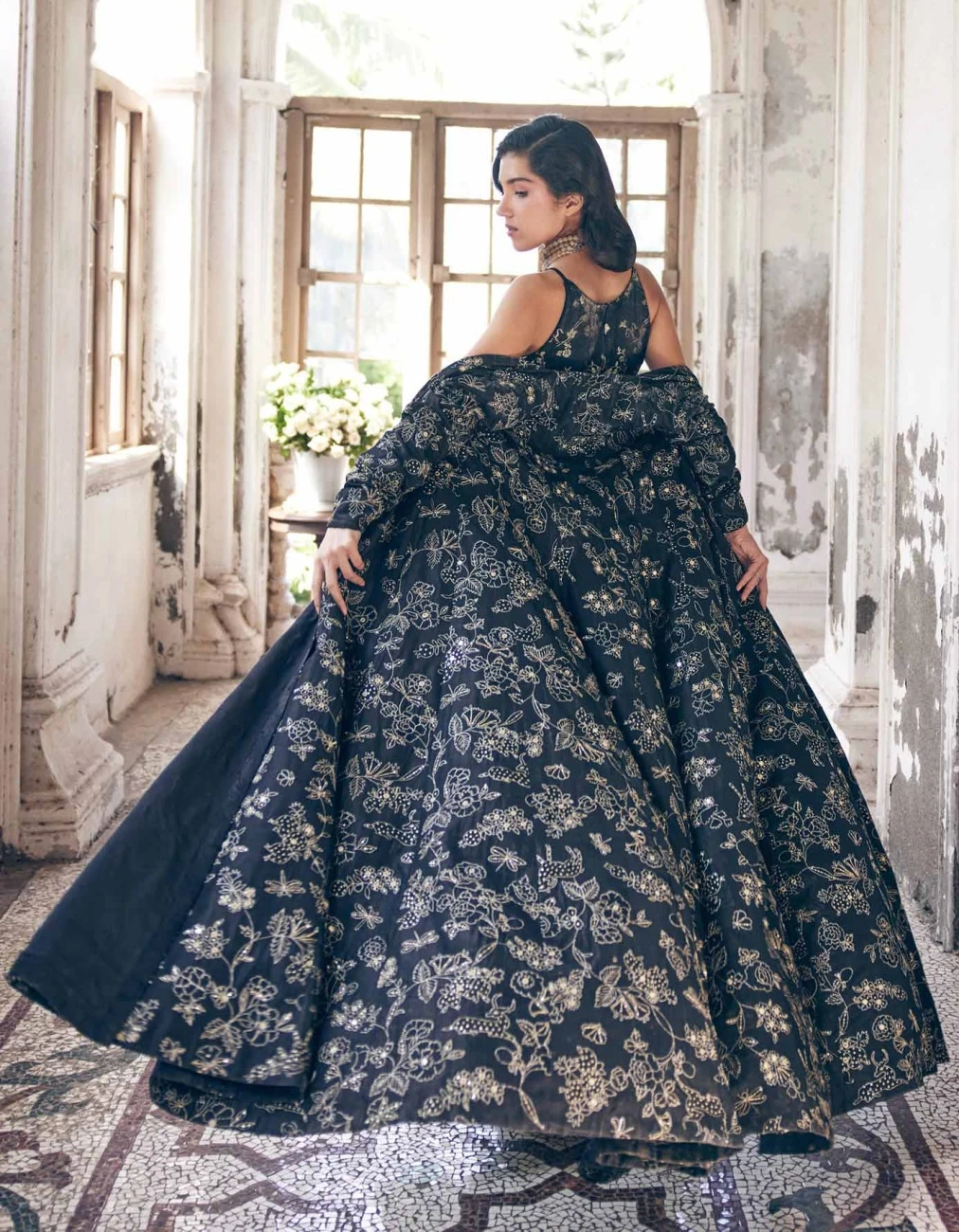- Black Self Woven Jacquard Jumpsuit Set