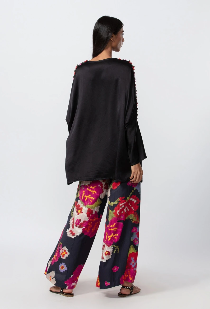 - Blouse : Batwing Sleeve Blouse With Mirror, Thread And Metal Hand Embroidered Shoulder And Sleeve Detailing