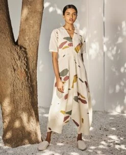 - An ecru terracotta print jumpsuit with a concealed zipper opening