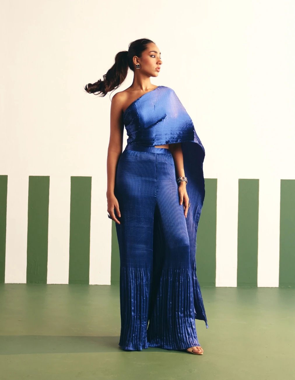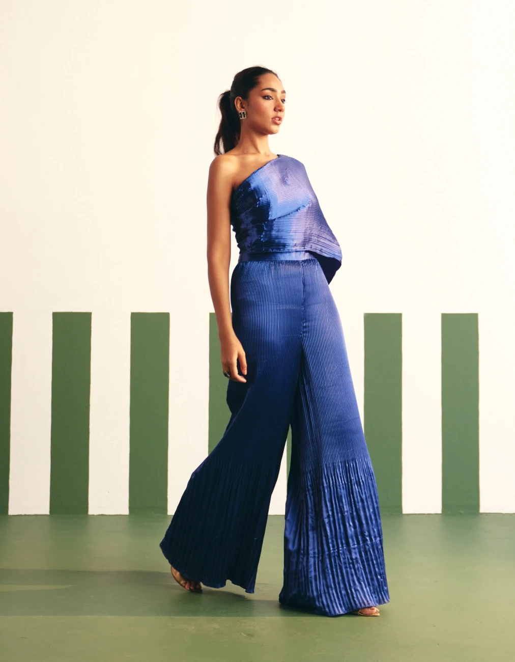 - one off shoulder drape jumpsuit