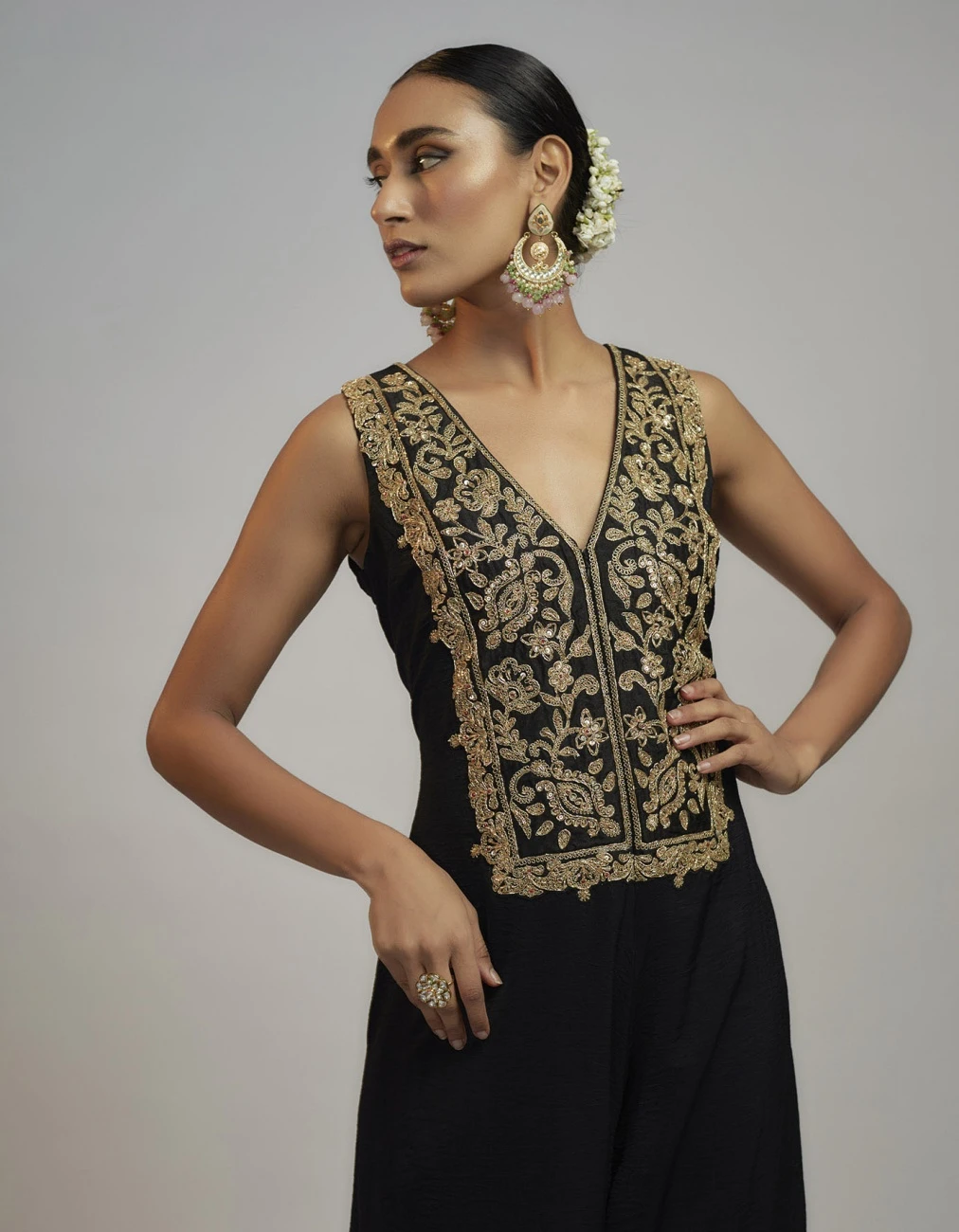 - Make a bold statement in this jumpsuit, where modern sophistication meets traditional craftsmanship