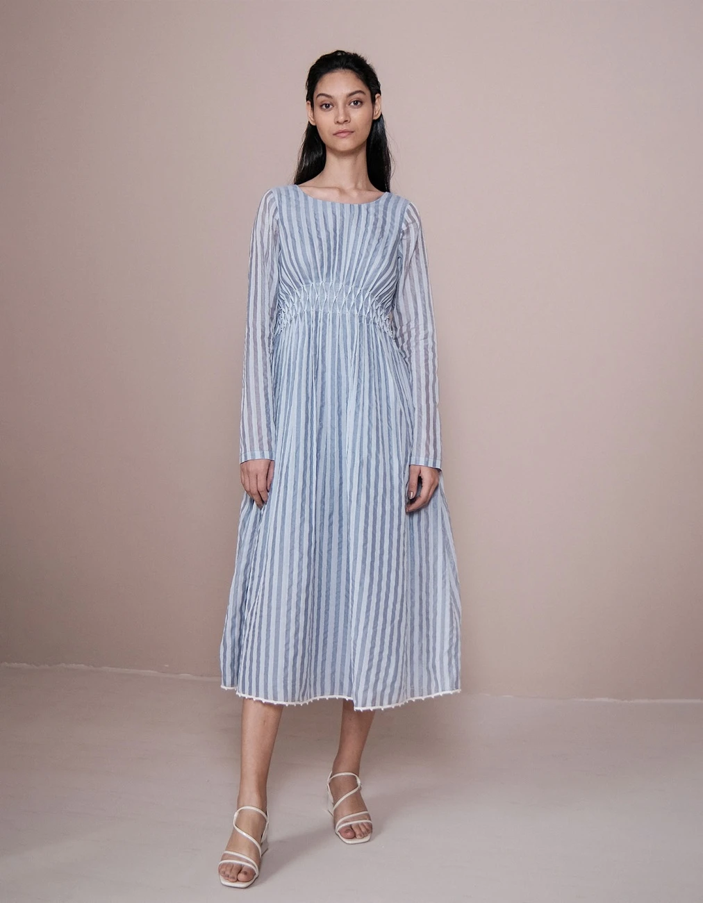 - Hand smocked details at the waist