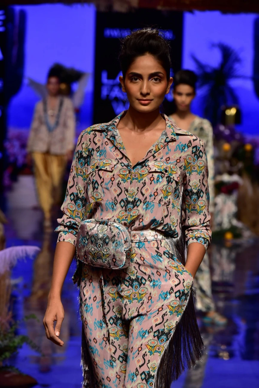 Innovative feminine silhouettes doused in flirtatious ruffles, labyrinthine florals, meticulous zari work and eclectic details