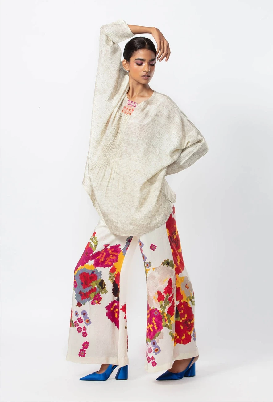- Trousers : Abstract Floral Placement Print Palazzo