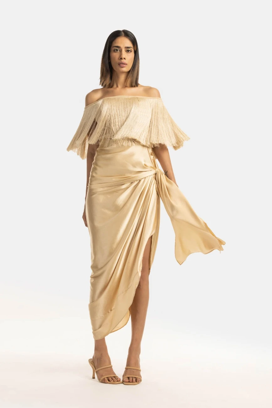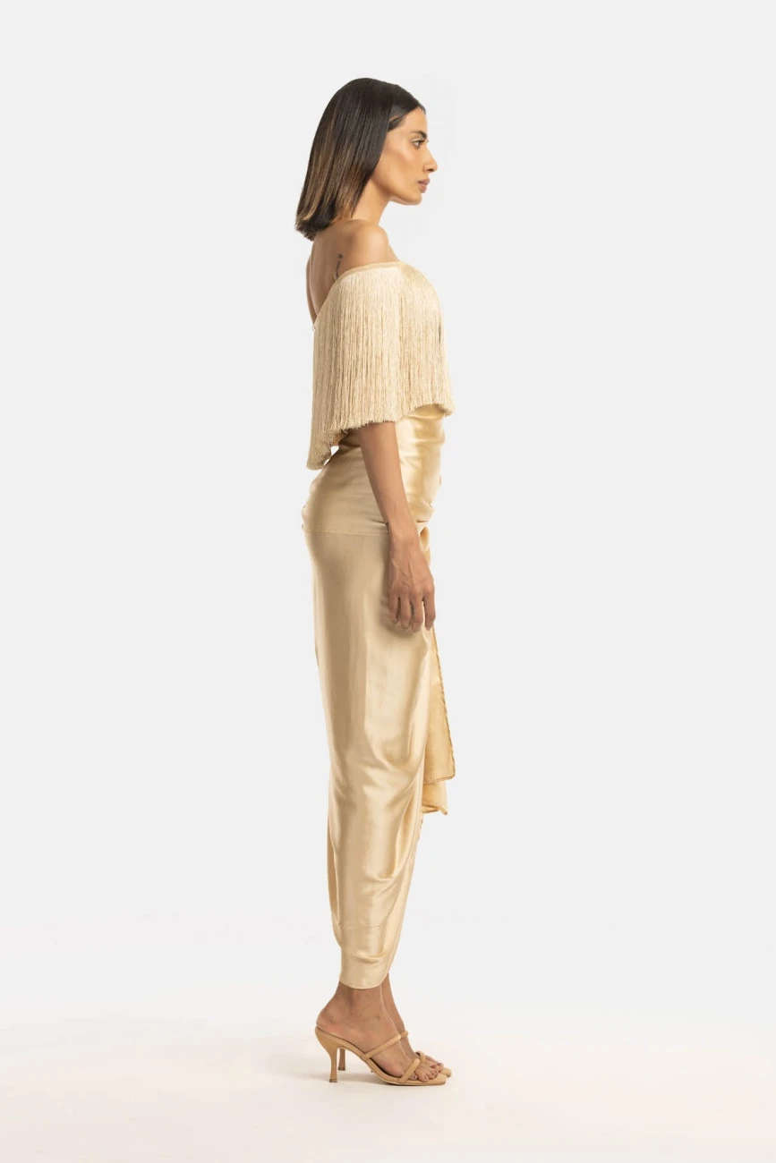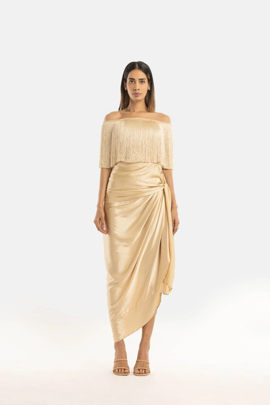 - Fringe off shoulder top, the base fits well on the body and the fringe moves