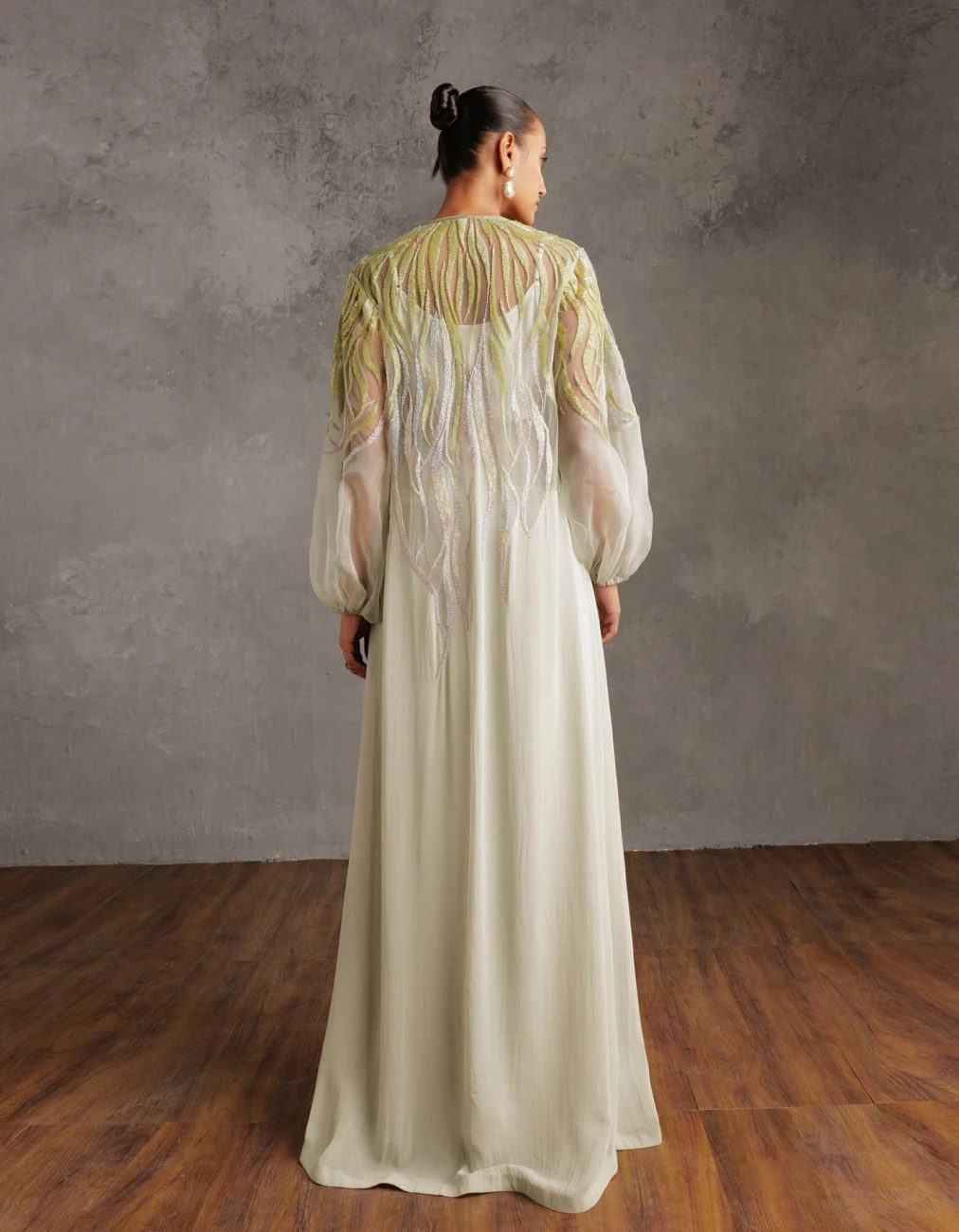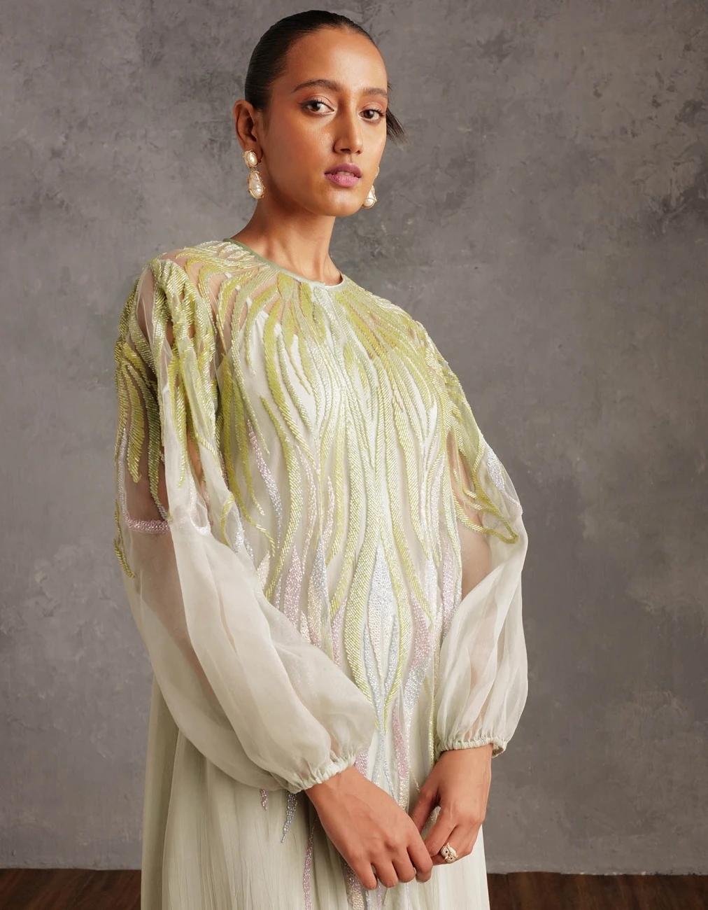 - Ramona shirt dress featuring intricate bugle bead pattern embroidery