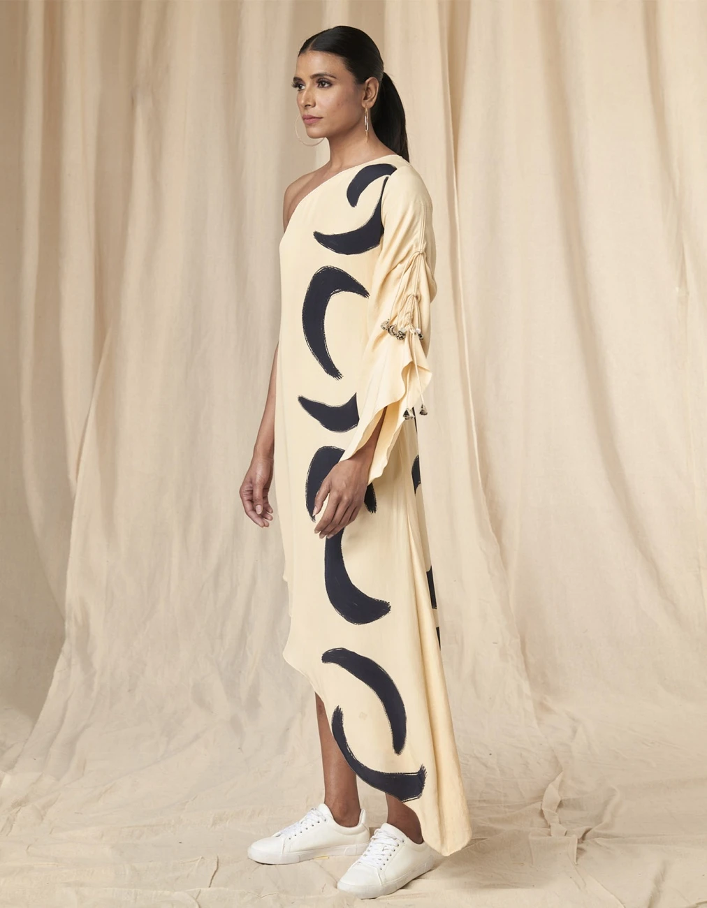 - Details – This one Shoulder Kaftaan dress comes with synched sleeves along with tassels
