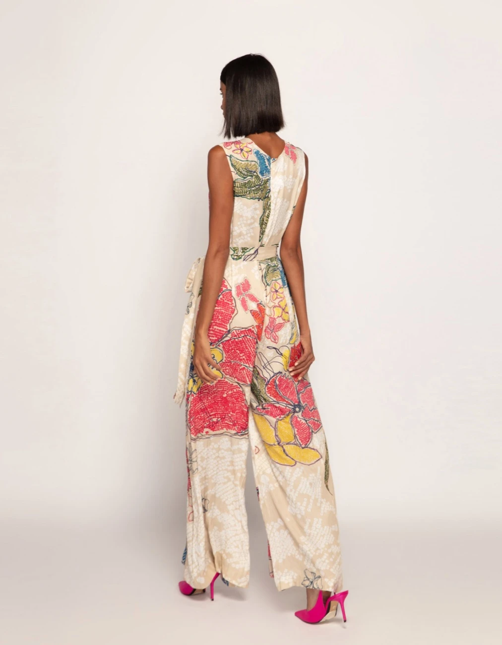 - Periwinkle Bandhani Print Sleeveless Jumpsuit With Detachable Belt