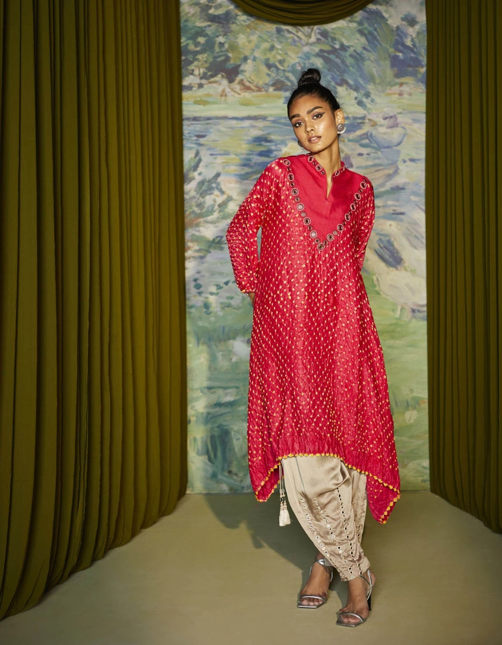 - Rabari asym hi neck dress in gajji silk bandhani