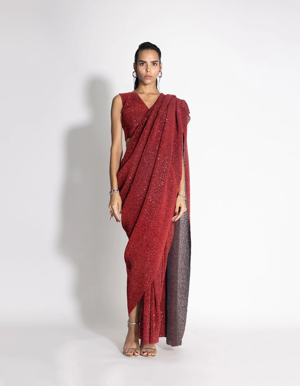 - The AQS Top is in sequins fabric. It has a deep V-neck and closes at the back with hooks.