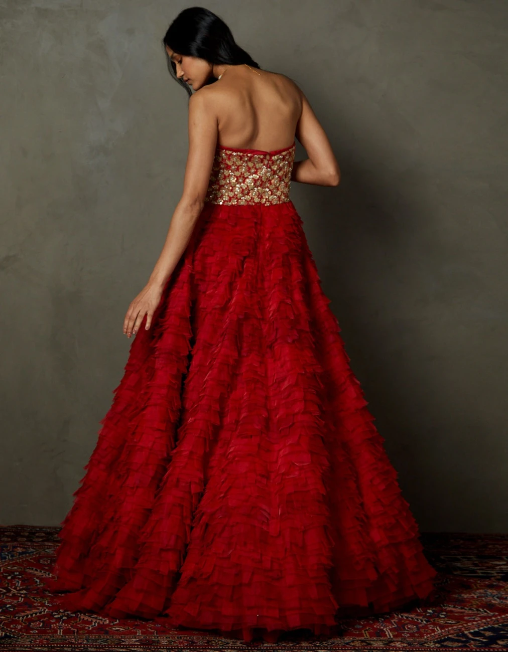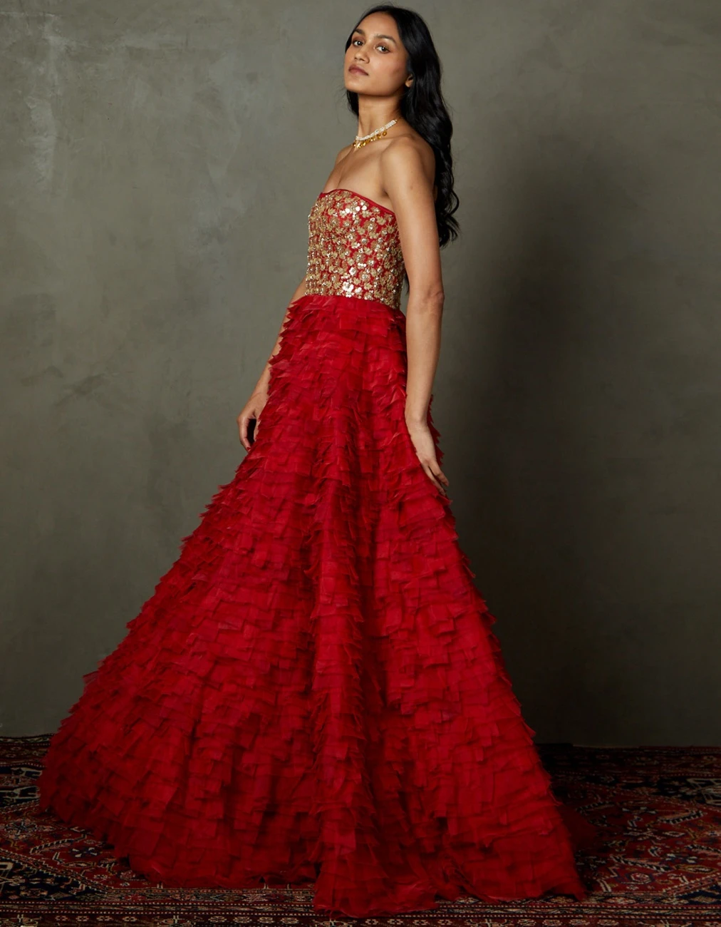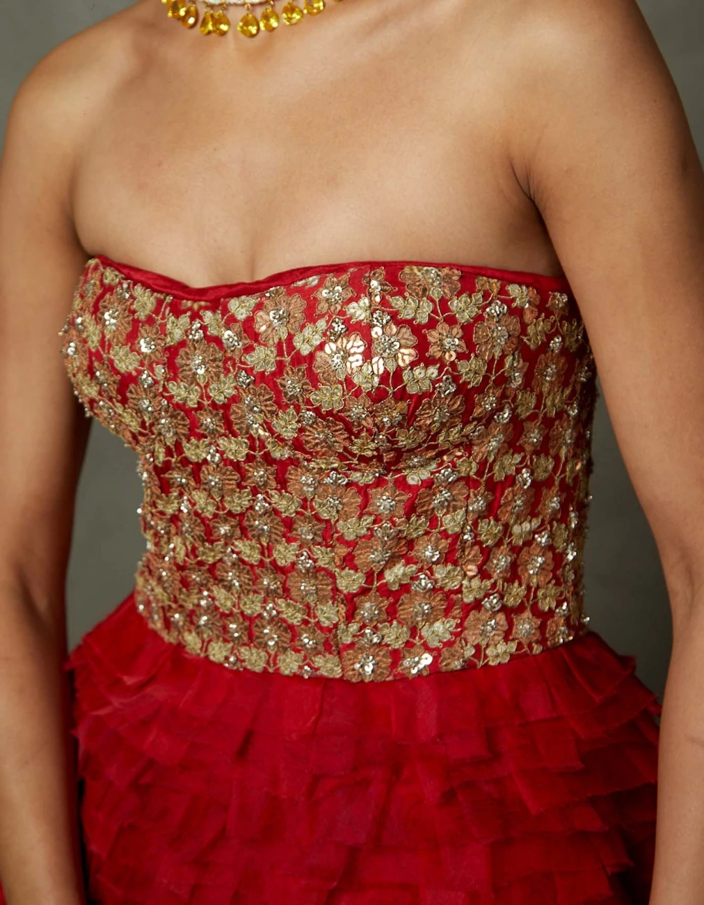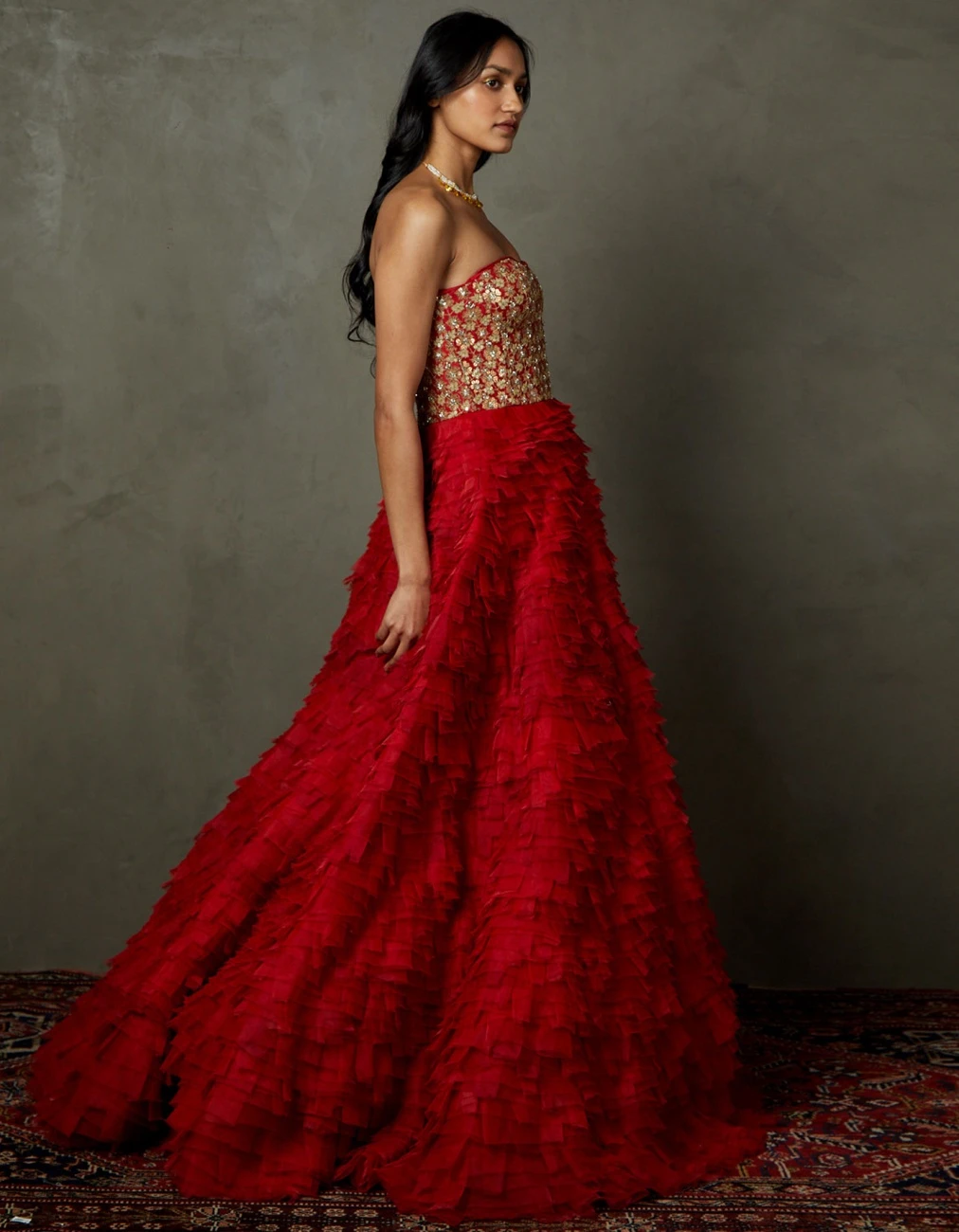 - Scarlet Red Aria Embroidered Gown