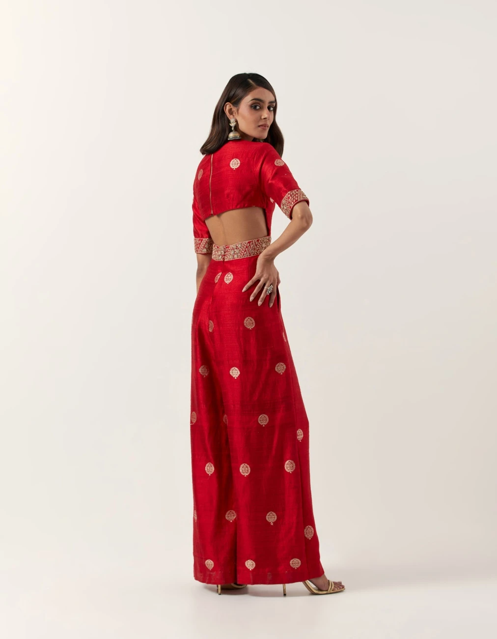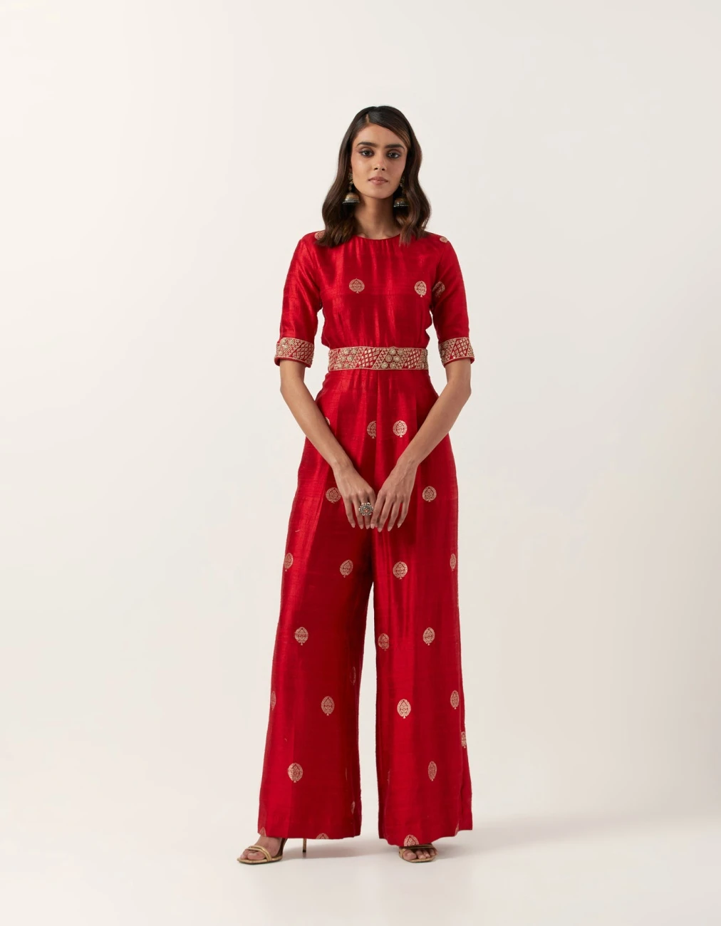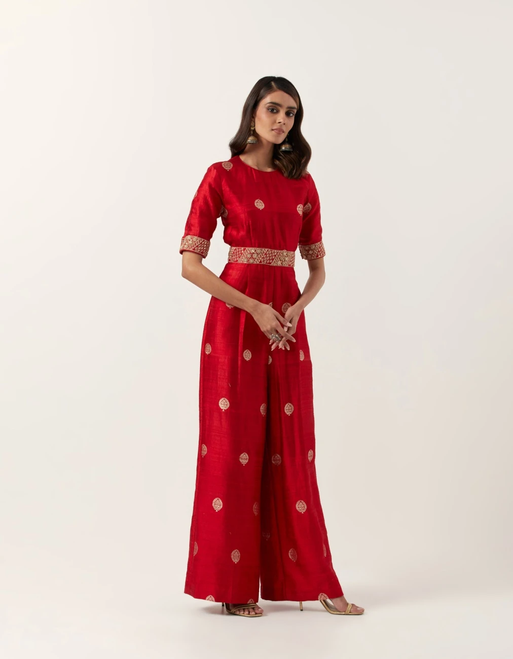 - Surkh laal jumpsuit with marodi embroidered sleeves