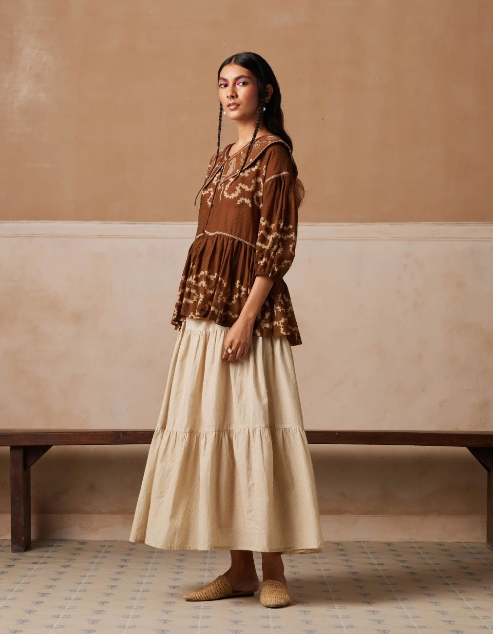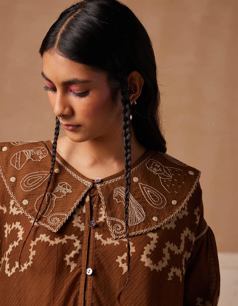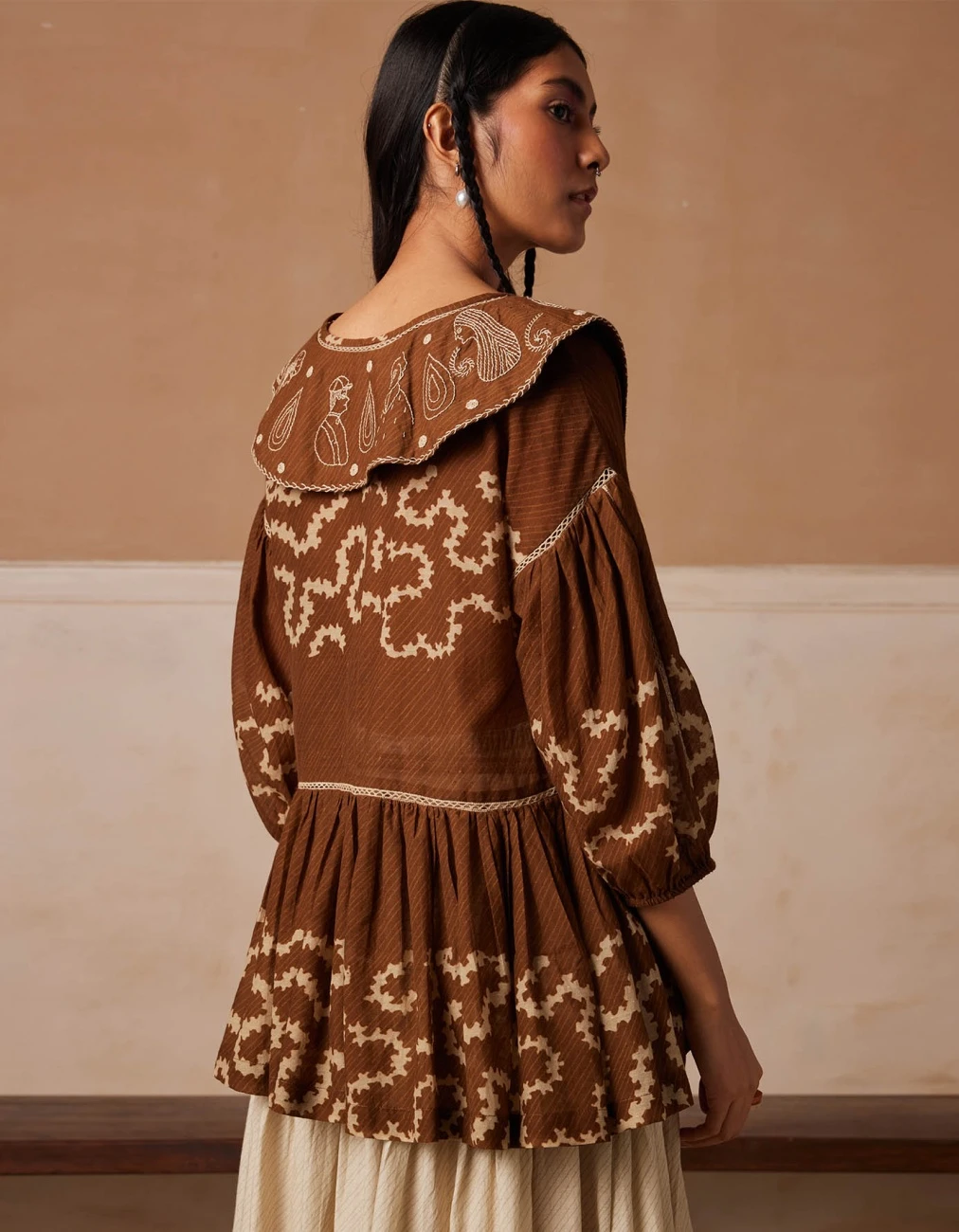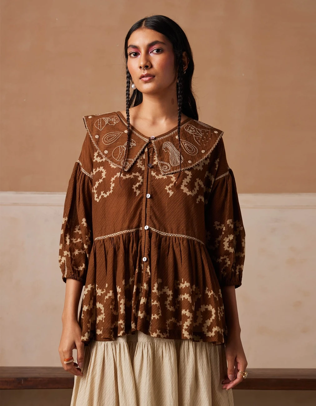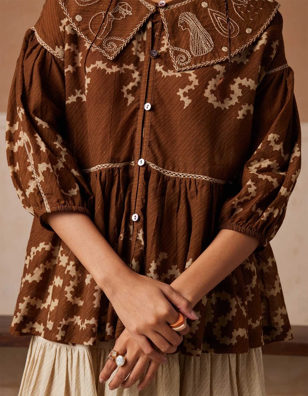 - The folk top is a buttoned-up top made from 100% pure cotton featuring hand-embroidered buttons and details on the collar and contrast piping