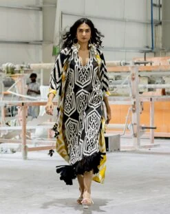 - Abstract wing flower print part hand micro pleated corset style sari dress