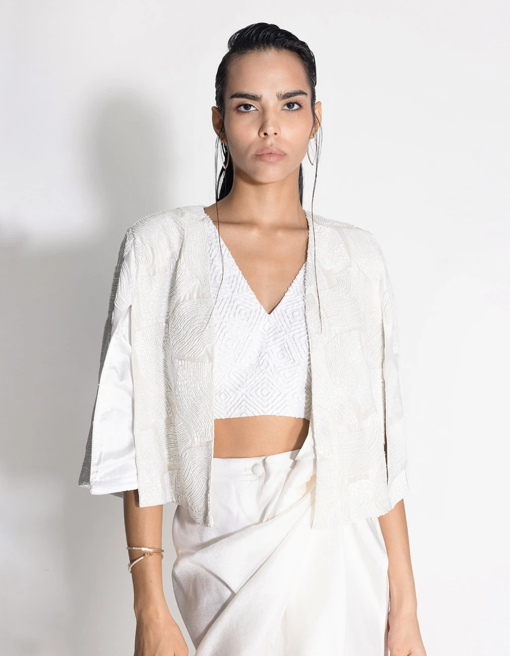 - . The Masai Top, is a tonal hand embroidered top. Pair it with our draped saris and skirts.
