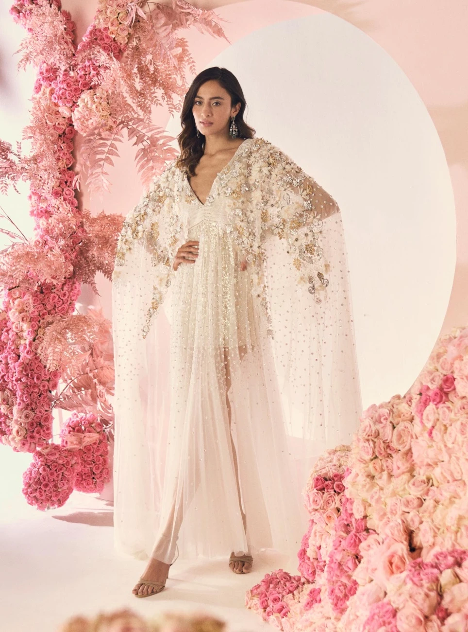 - Hand applique organza flowers adorned with sequin