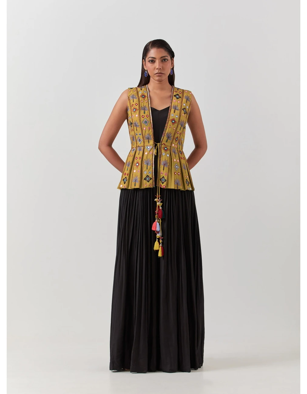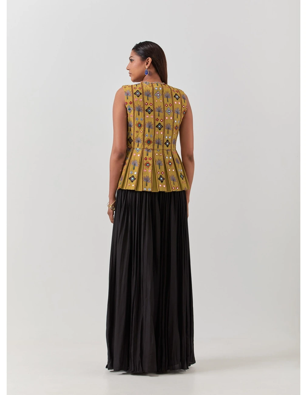 - Multicolor embroidered sleeveless peplum set